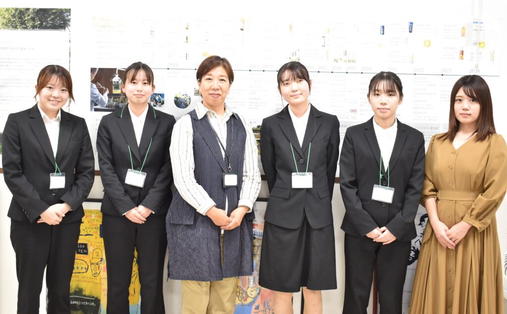 ▲(左から)参加した学生さん2名、代表鈴木、学生さん2名、スタッフ疋田