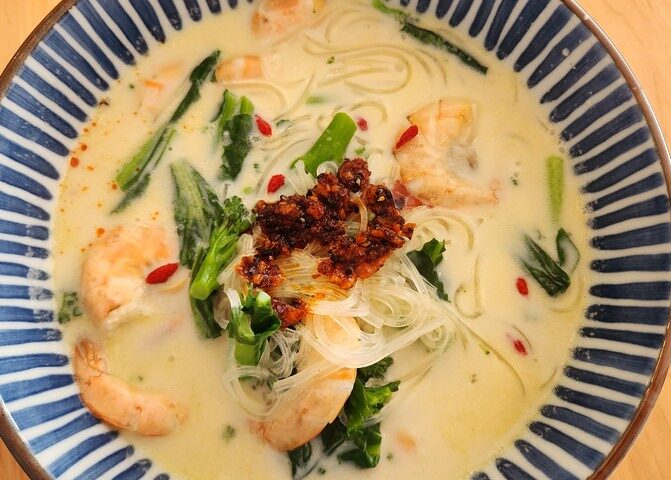 ピリッとした辛さの中に豆乳のまろやかさが加わり、そこにクコの実のほんのりとした甘みがアクセントになって、とても食べやすい仕上がりになりました。