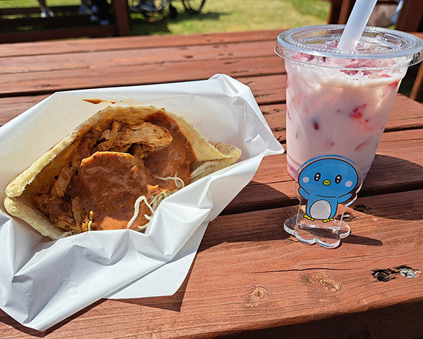ケバブサンドと果肉ごろごろのいちごミルク!