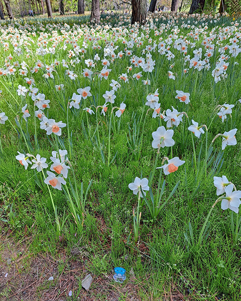 こちらの花は水仙の一種で『クールフレーム』というそうです。そのかわいらしい姿から、立ち止まって見入ってしまう人も多くいらっしゃいました。