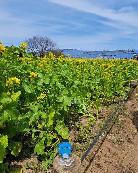 まずは菜の花畑越しのネモフィラをどうぞ!
