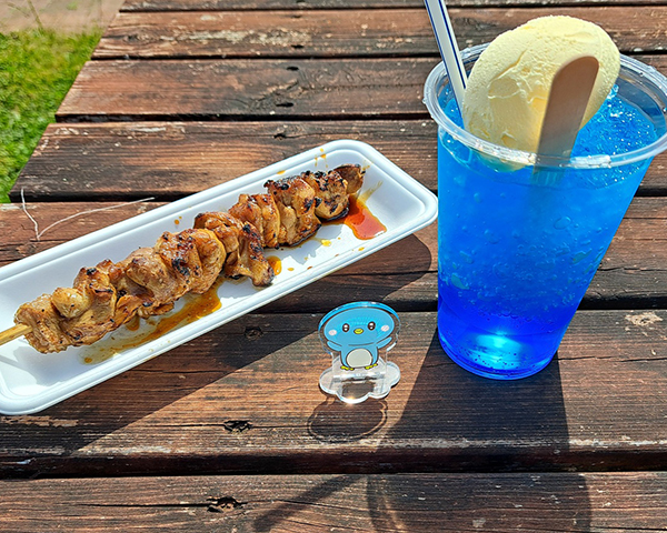 大っきい焼き鳥と青いクリームソーダ!