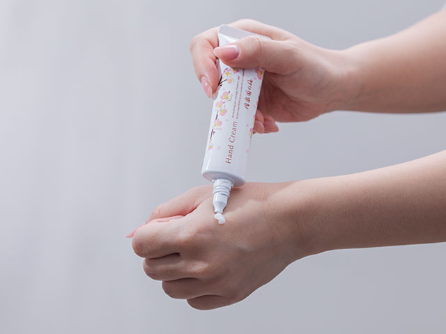 ハンドクリームを塗ったあと、指を一本ずつほぐしたり、親指と人差し指の間にある「合谷(ごうこく)」のツボを押したり、手のひらをストレッチしたり…、普段働きものの手先を、梅の香りを楽しみながらゆっくりとほぐしていきます。