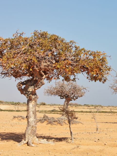 ミルラはアフリカや中東の乾燥地帯に生育するカンラン科の灌木です。樹皮の傷から分泌される樹液の固まったもの(樹脂)は、古代からお香、医薬品として大切にされてきました。古代エジプトでミイラを作る際に用いられたほか、聖書にも登場し、イエスキリストに三人の博士が捧げた3つの贈り物のうちの一つの没薬(もつやく)としても有名です。